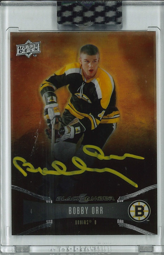 2001-02 Upper Deck NHL Legends Signatures (/25) travels back over two decades to celebrate former greats on the UD Legends Epic Signatures design.