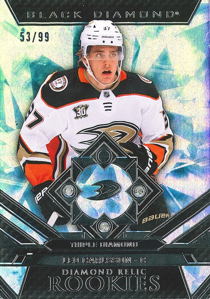 The diamond relics give fans something extra sparkly to chase in 2023-24 Upper Deck Black Diamond Hockey. The Diamond Relic Rookies (/99) line is always a favorite with single, double, triple and quad diamond versions with multiple parallels.