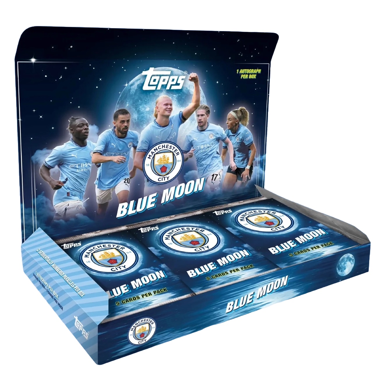 2024-25 Topps Blue Moon Manchester City Soccer is dedicated to all things City, including current and former standouts from the men's and women's clubs.
