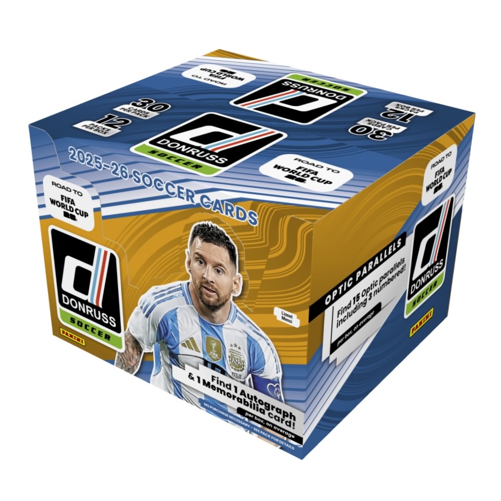 From there, the 2025-26 Donruss Road to FIFA World Cup 26 Soccer inserts combine to yield four cards per Hobby pack, and 48 per Hobby box.