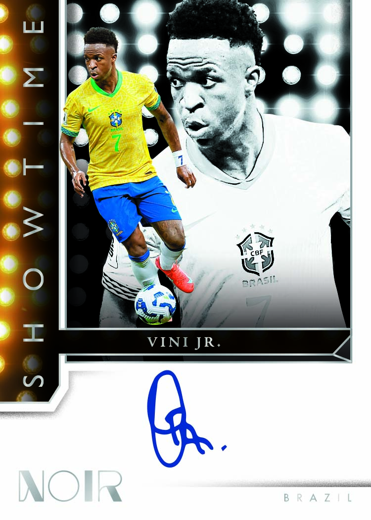 Up first for 2025-26 Panini Noir Road to FIFA World Cup 26 Soccer, the 200-card base set offers Base Vertical versions of top stars across the world.