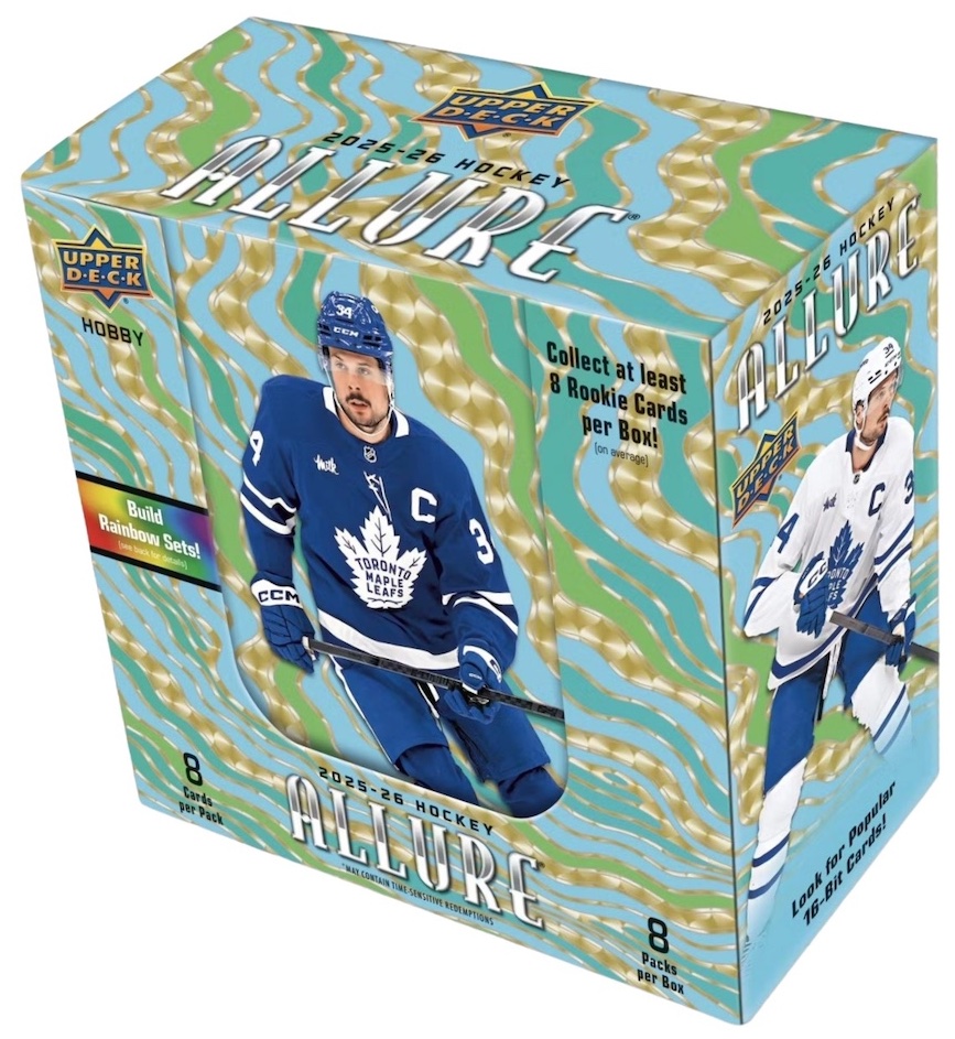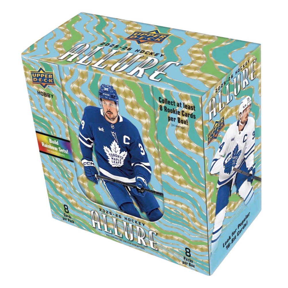 An annual release from UD, 2025-26 Upper Deck Allure Hockey covers NHL stars and rookies with a mix of chromium parallels and inserts.
