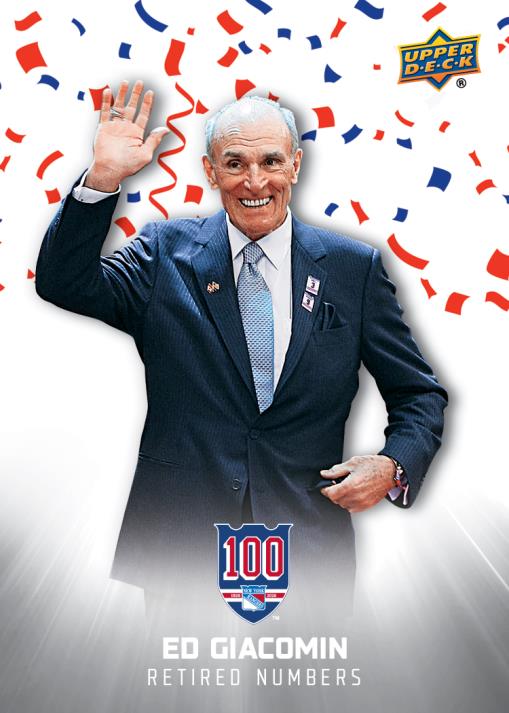 The expanded Hobby lineup for 2025-26 Upper Deck New York Rangers Centennial Hockey includes 100 base cards covering some of the greats, plus another 100 high-series cards. These short-printed subsets combine to average two per pack.