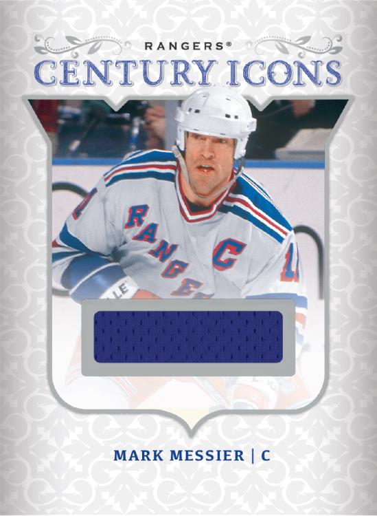 Find game-used swatches in Blueshirts Materials (1:80 packs), Blueshirts Materials Duals (1:1,000 packs), Blueshirts Materials Triples (1:2,000 packs), Blueshirts Materials Quads (1:5,000 packs) and Century Icons Relics (1:500 packs).
