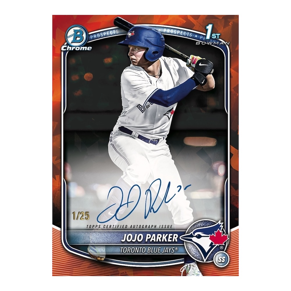 Led by the "1st Bowman" cards, the 2025 Bowman Draft Sapphire Baseball checklist enhances the Bowman Draft base Chrome set with a mesmerizing cracked-ice Refractor in a blue color scheme.