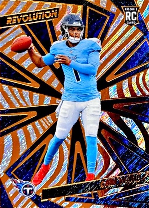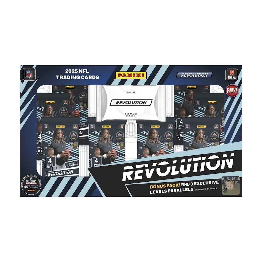 2025 Panini Revolution Football offers the "Debut Edition" of the standalone NFL brand. While this is the first full release under the Panini banner, Revolution inserts have been featured in past Chronicles and Donruss Football sets.