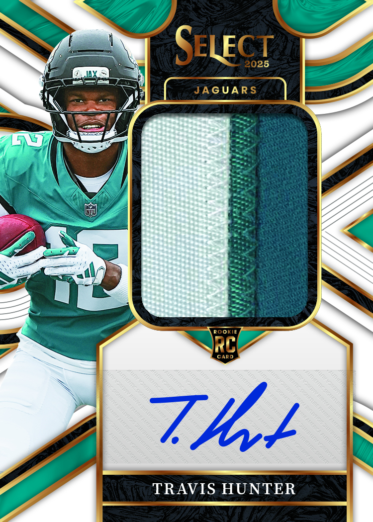 Autographs and relics deliver the hits in 2025 Panini Select Football, with three expected to appear in every Hobby box.
