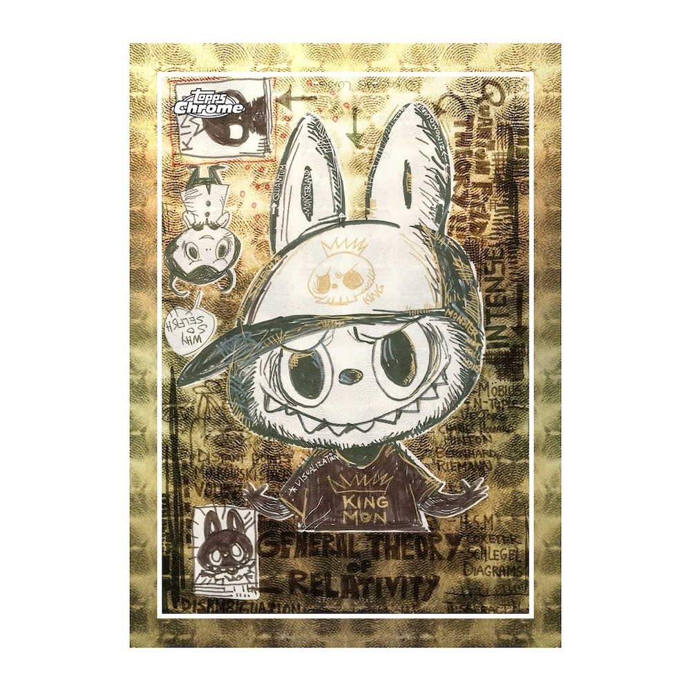 The base set for 2025 Topps Chrome Labubu 10th Anniversary highlights the distinct creatures with artwork from Kasing Lung.