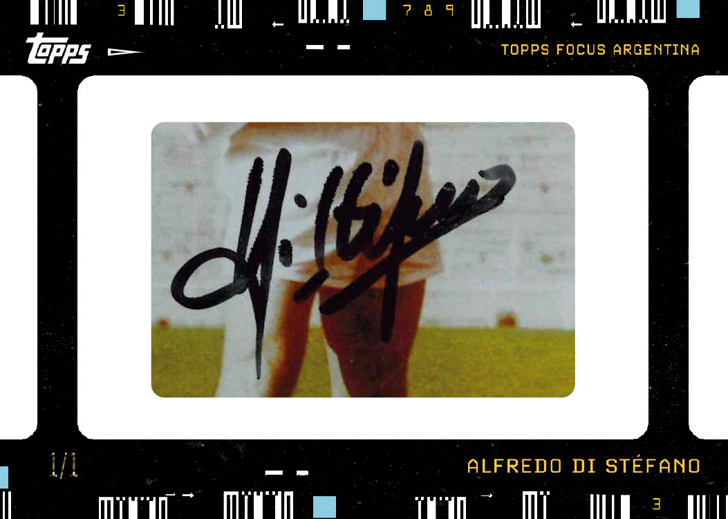 While the photography is the primary focus of the product, the 2025 Topps Focus Argentina Soccer checklist is headlined by Lionel Messi autographs and cut signatures from Diego Maradona and Alfredo Di Stéfano.