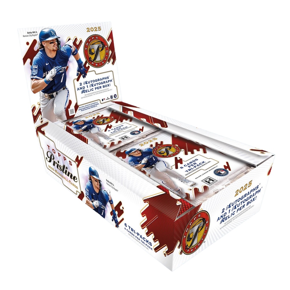 Again utilizing a pack-within-a-pack format (via tri-packs), 2025 Topps Pristine Baseball checks in much later than last season. The 2024 edition arrived in August of the same year.