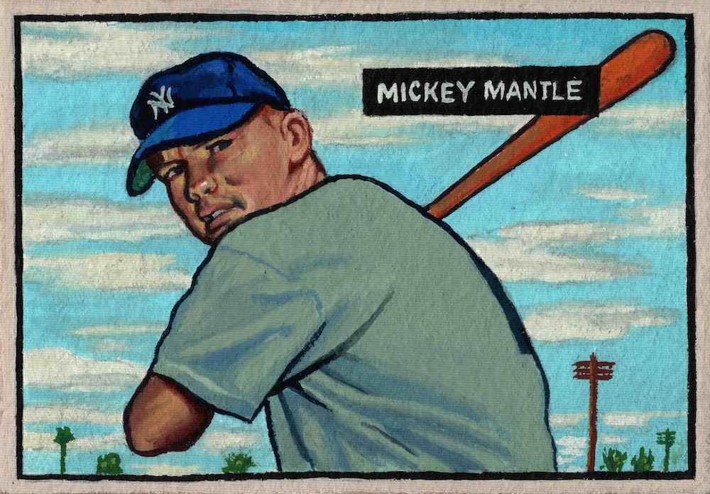 1952 Topps Miscut Original Painting - OP-JRMM Jackie Robinson/Mickey Mantle - 1952 Topps #312/1952 Topps #311 (Brooklyn Dodgers)