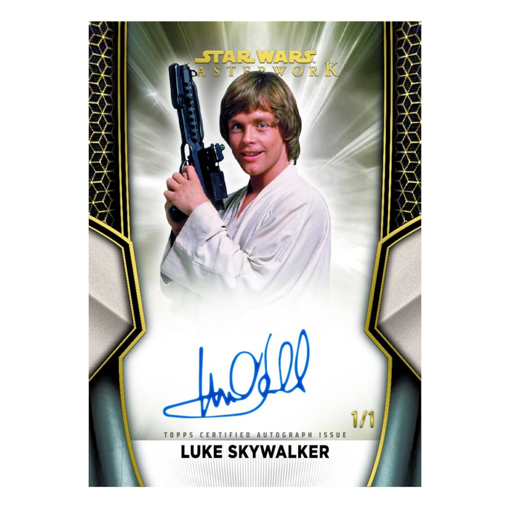 Hard-signed autographs headline the 2025 Topps Star Wars Masterwork checklist, with a deep lineup of Hollywood stars who have appeared in the long-running franchise.