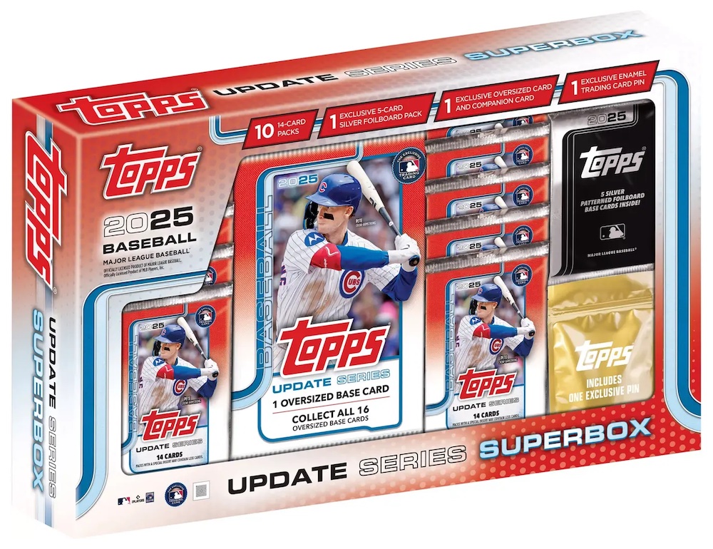 The main packs usually have a smaller selection of cards, but there still should be base and some possible inserts/hits. Odds should be up closer to the release date. The Super Box exclusives are noted at the bottom of the checklist: https://www.checklistinsider.com/2025-topps-update-series-baseball#:~:text=Baseball%20Super%20Box-,Checklist,-2025%20Base%20Oversized