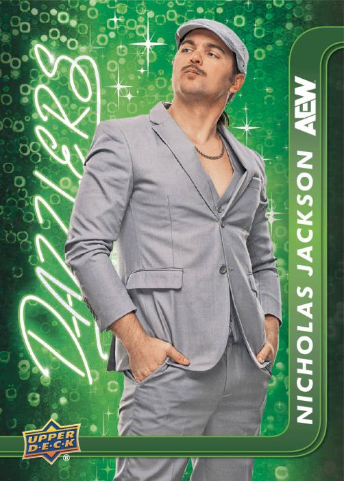 On top of that, 2025 Upper Deck AEW Wrestling continues the seasoned flagship staples, like Dazzlers. Each Hobby box should have three Dazzlers inserts. Blasters have exclusive Orange versions.