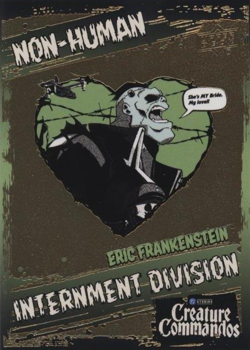 The Non-Human Internment Division (1:4 packs) series mainly relies on logos or tags to represent the characters. For Eric Frankenstien, the focus is his love of the Bride.