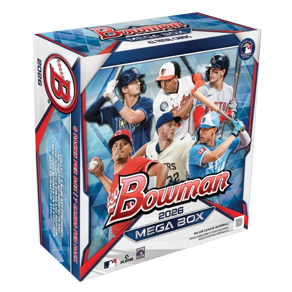 The 2026 Bowman Mega Box Baseball checklist ties into the overall 2026 Bowman MLB lineup, but with the signature Mojo Refractor treatment and far fewer choices.