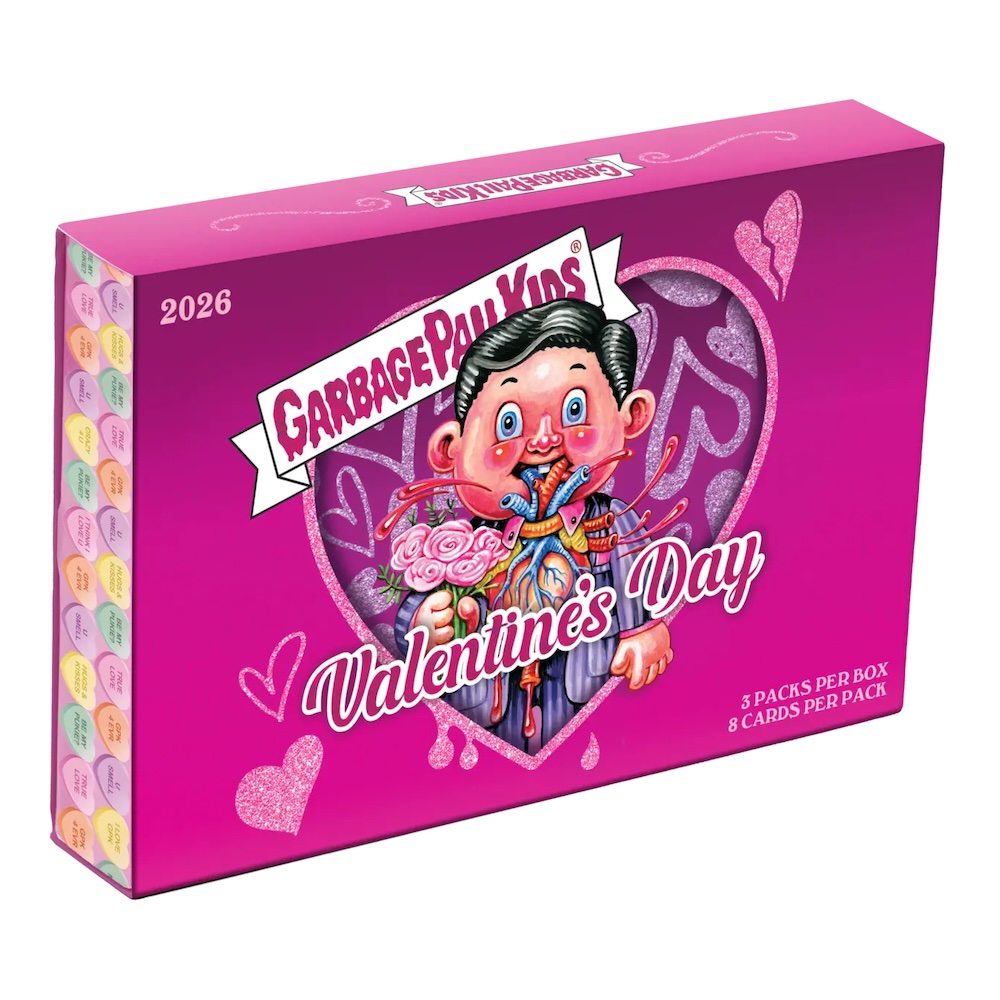 Available for a limited time, 2026 Topps Garbage Pail Kids Valentine's Day again uses the holiday of love to capture the GPK spirit.