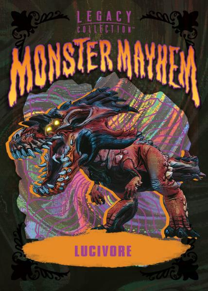 Dedicated to the formidable adversaries, Monster Mayhem (1 per pack) is another common insert. Both of these inserts offer limited parallels.